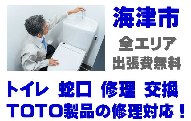海津市でTOTO製品の修理業者をお探しなら当社までお気軽にお問い合わせください。トイレ便器タンクの故障、便座の修理、蛇口やシャワーの水漏れなどTOTO製品に関するトラブルなら何でもご相談ください。